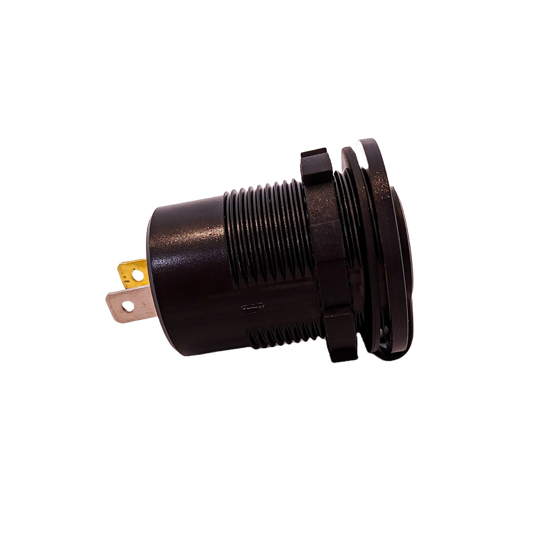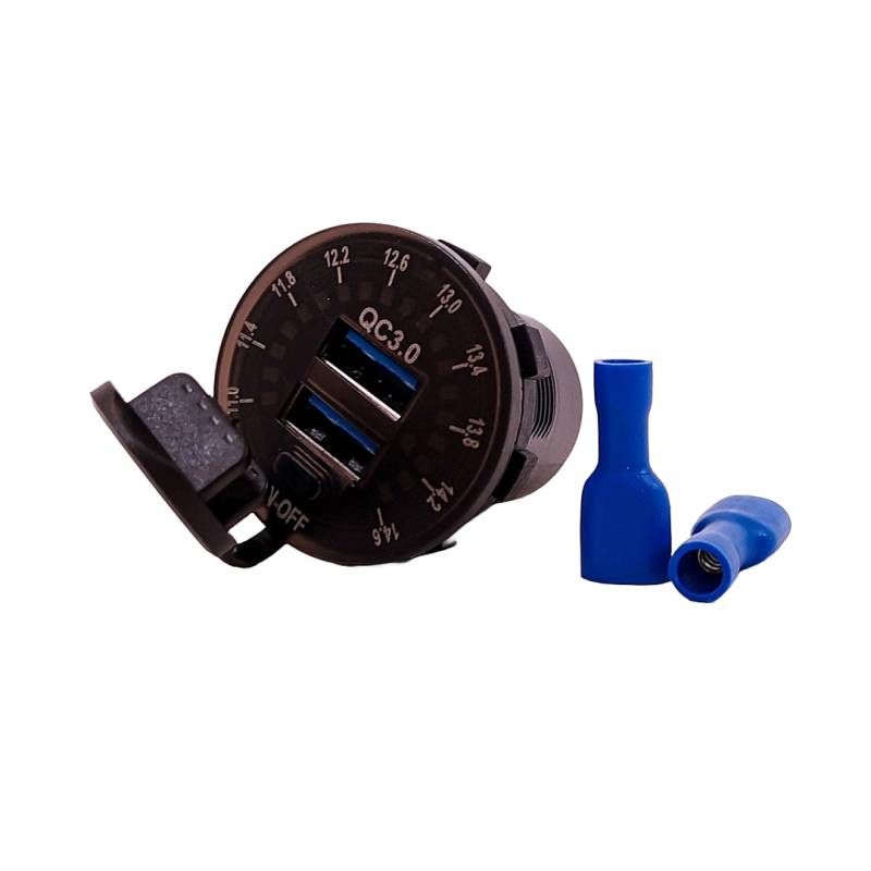KB-TOM011 ACCESORIO PARA CELULAR CARGADOR USB A ROSCA 12V / 24V UNIVERSAL USB DUAL 5V - 4.2A CON VOLTIMETRO SEMAFORO INCORPORADO Y TAPA PROTECTORA