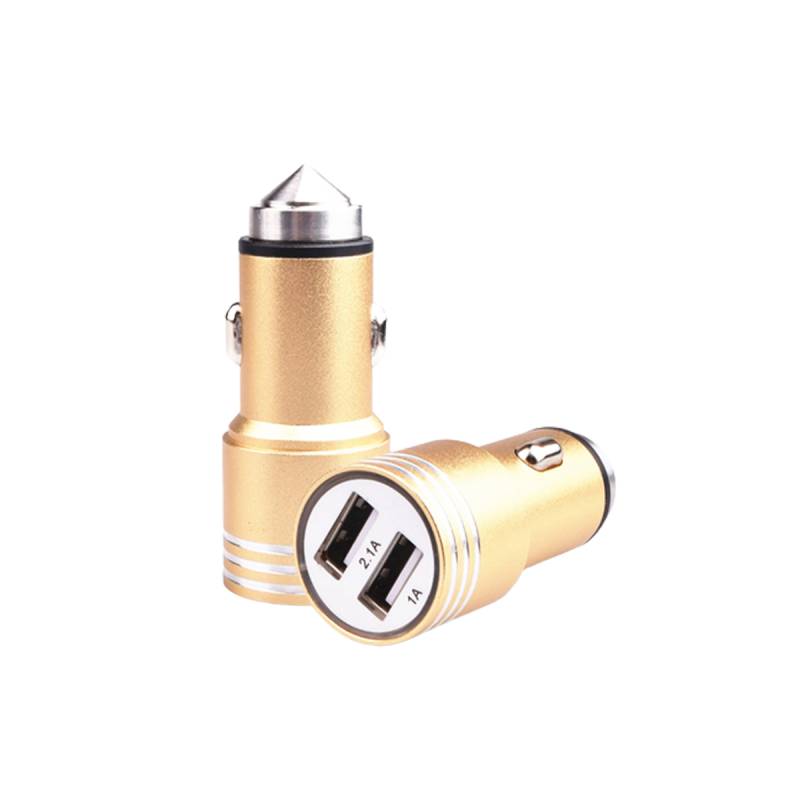 CARGADOR DOBLE USB + ENCENDEDOR DE ZINC CON BASE MARTILLO METALICA 12V / 24V OUTPUT 5V 4200 MA DORADO
