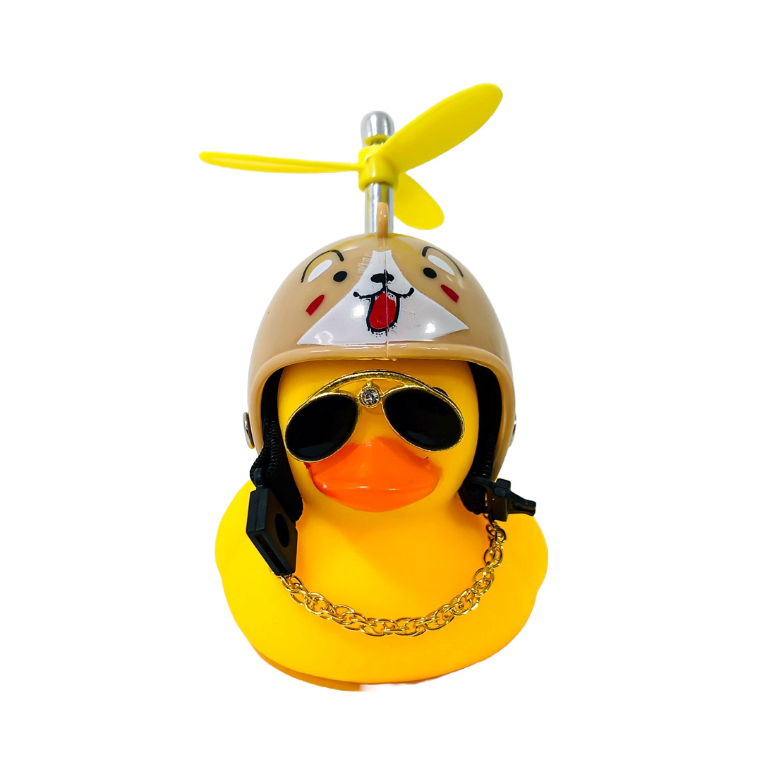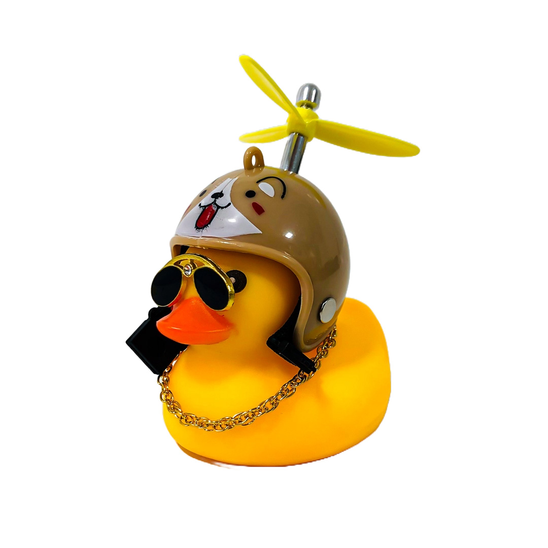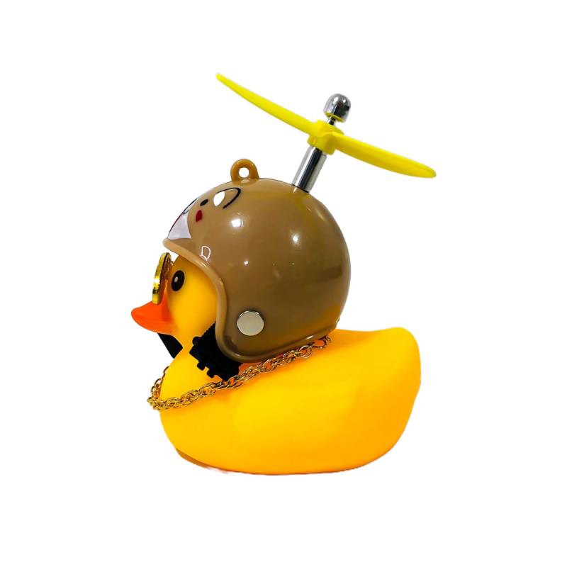 OR-DUCK007 PATITO DECORATIVO PARA AUTO, BICI O MOTO CASCO MARRON DIBUJO HAMSTER CON ANTEOJOS, CADENA Y HELICE