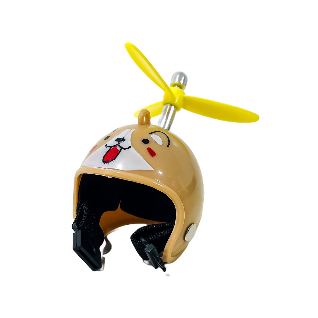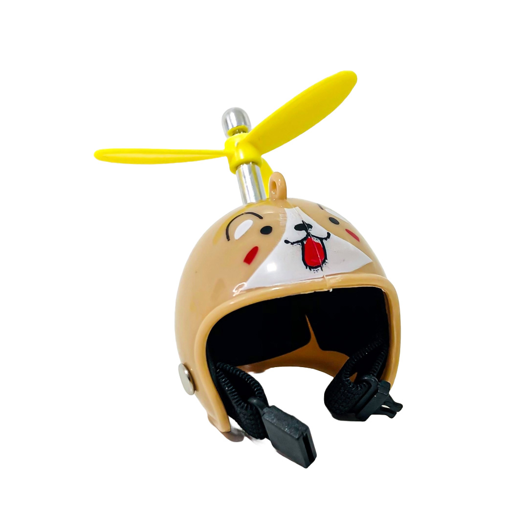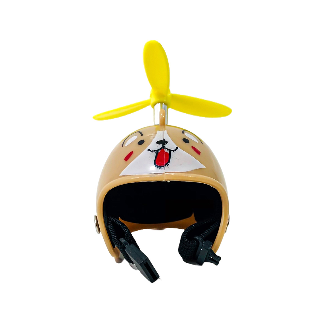 OR-DUCK007 PATITO DECORATIVO PARA AUTO, BICI O MOTO CASCO MARRON DIBUJO HAMSTER CON ANTEOJOS, CADENA Y HELICE