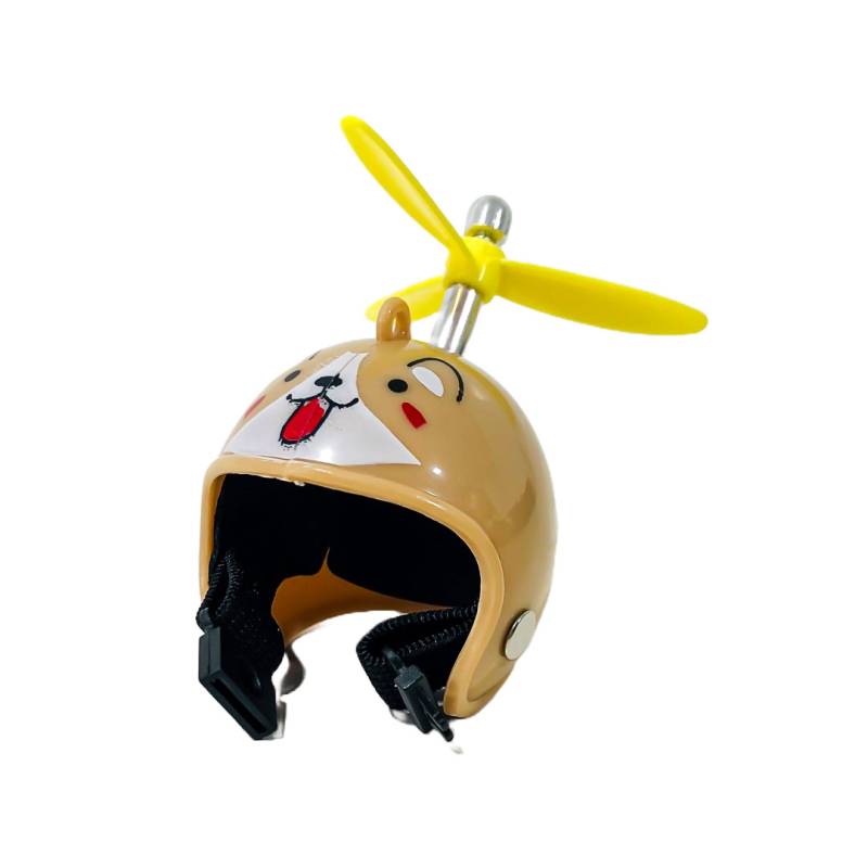 CASCO MARRON DIBUJO HAMSTER CON ANTEOJOS, CADENA Y HELICE