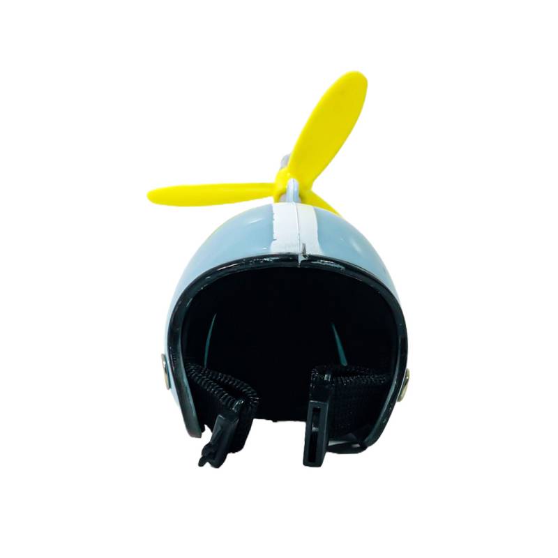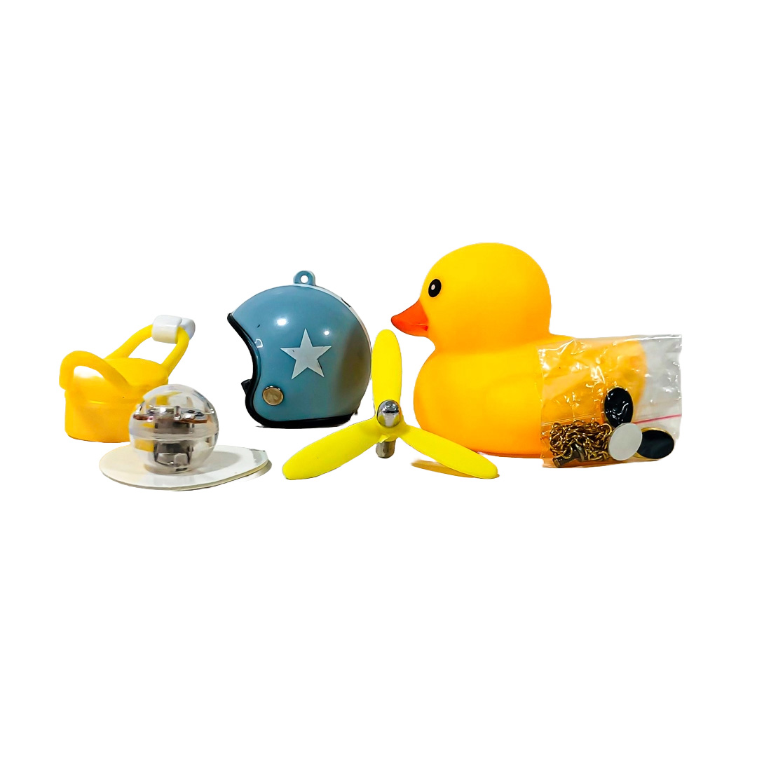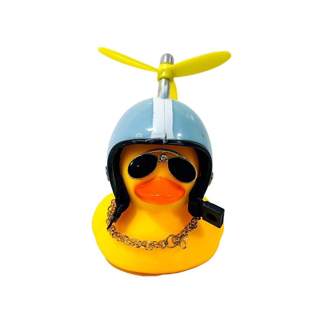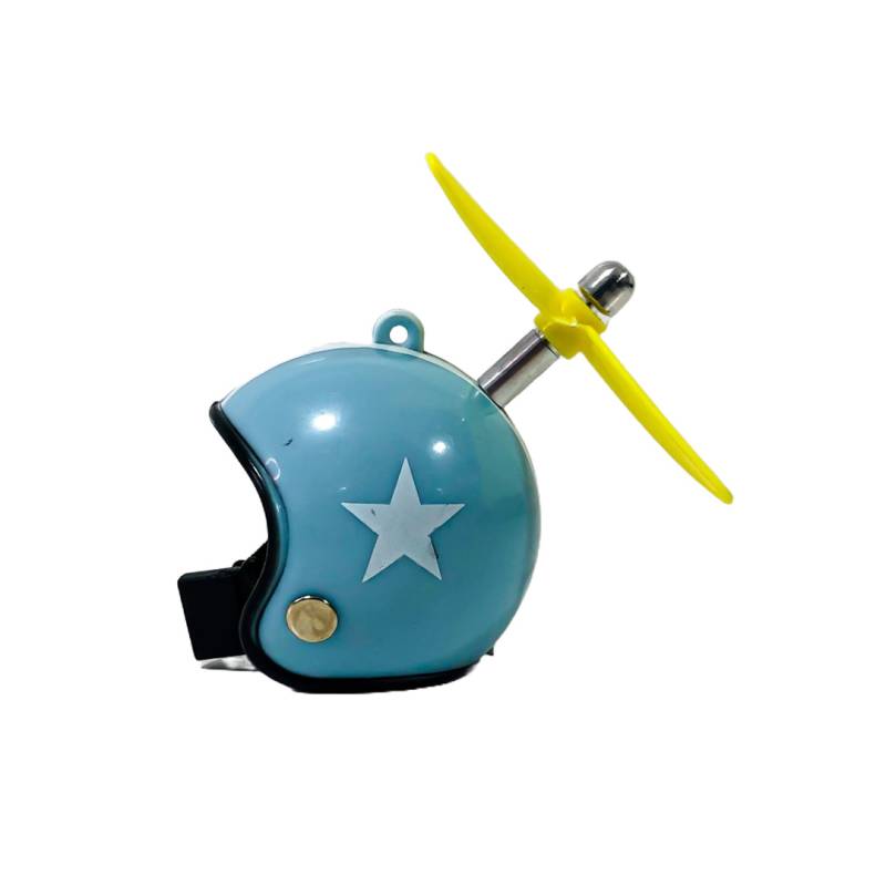 OR-DUCK009 PATITO DECORATIVO PARA AUTO, BICI O MOTO CASCO CELESTE DIBUJO ESTRELLA CON ANTEOJOS, CADENA Y HELICE