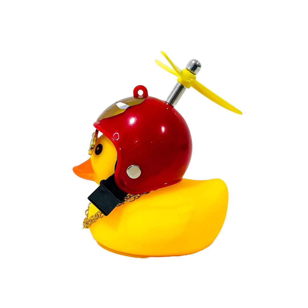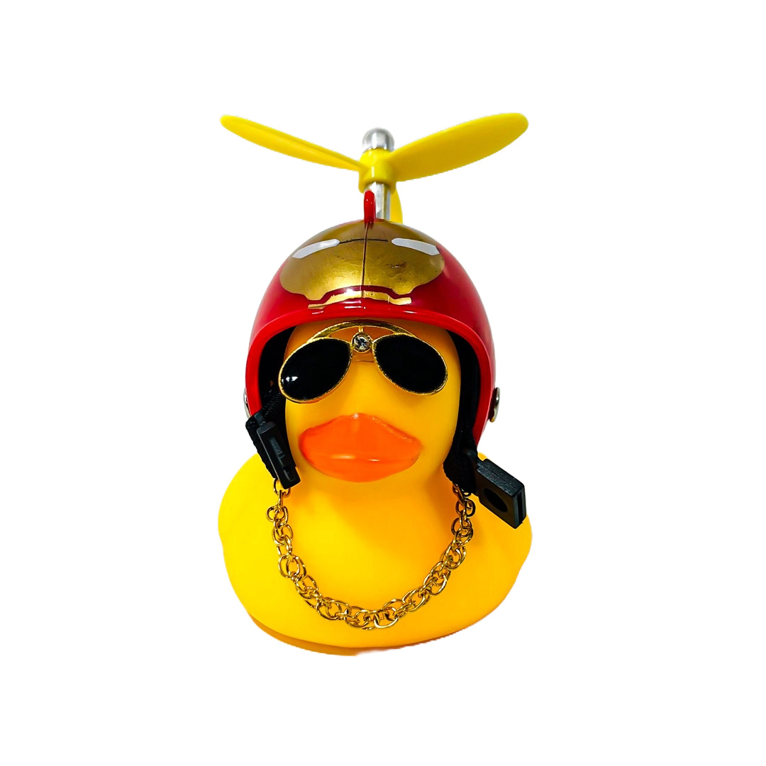 OR-DUCK001 PATITO DECORATIVO PARA AUTO, BICI O MOTO CASCO AMARILLO DIBUJO PATITO CON ANTEOJOS, CADENA Y HELICE