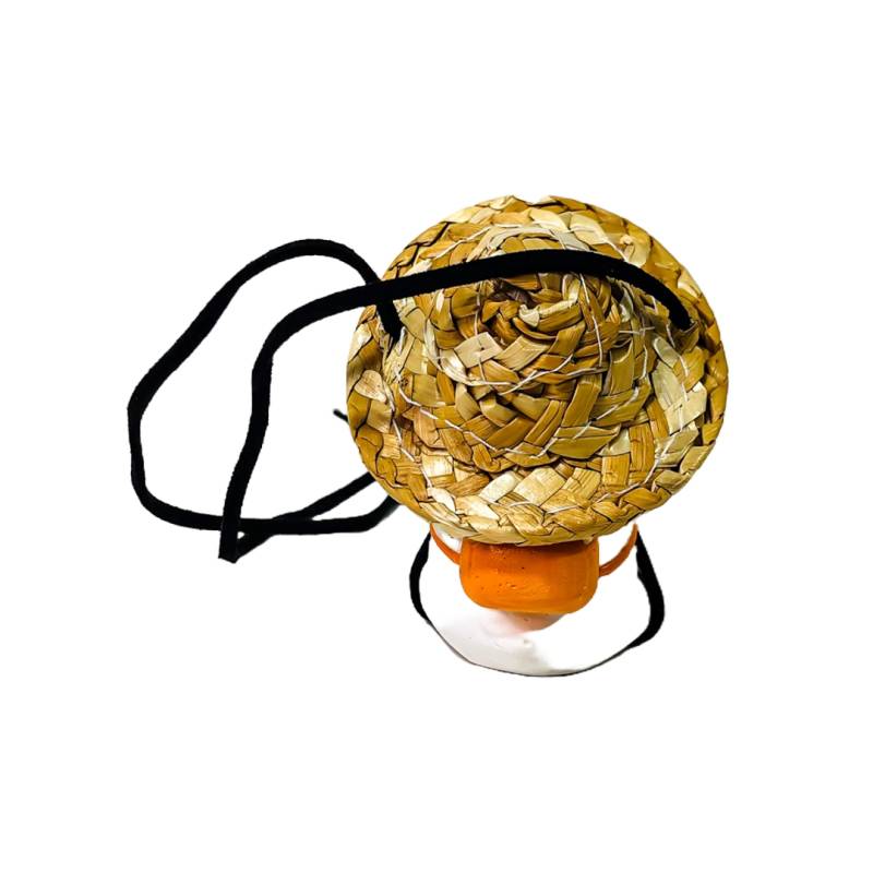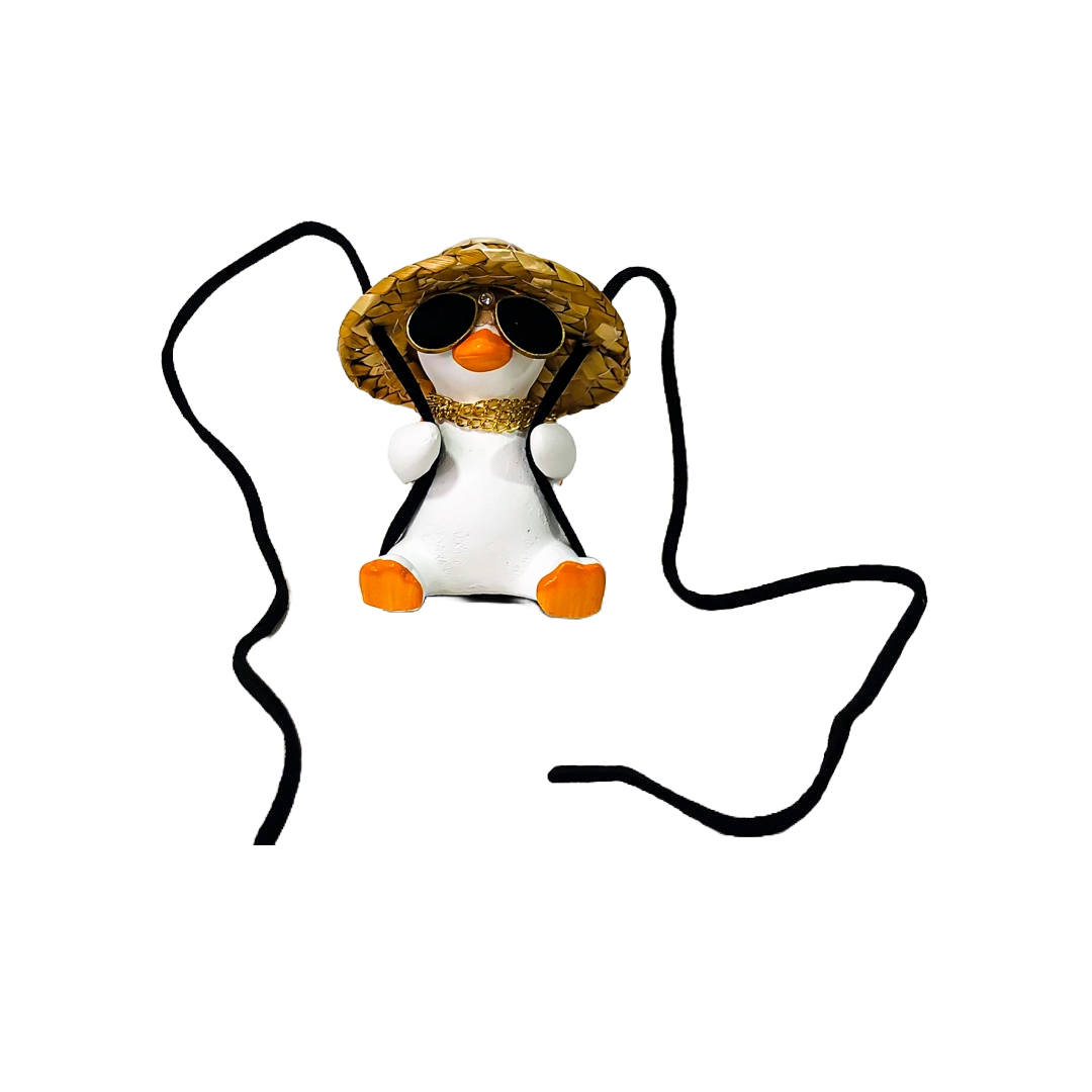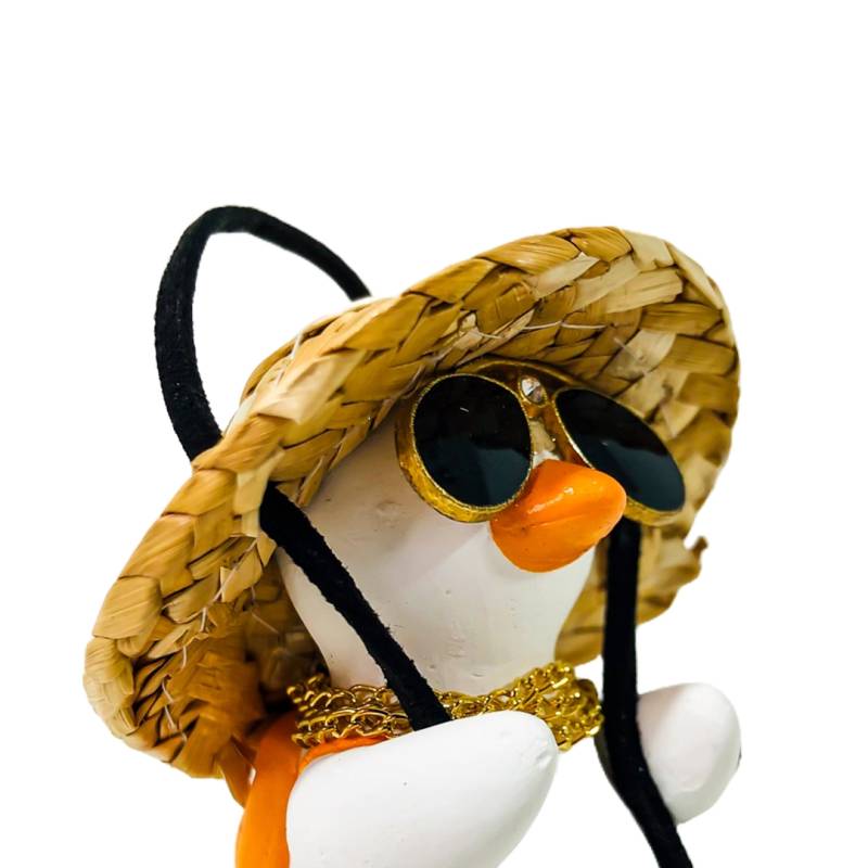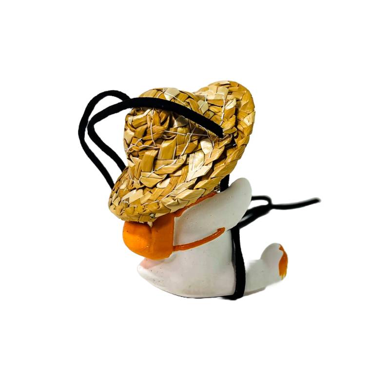 OR-DUCK017 PATITO DECORATIVO COLGANTE DE CERAMICA PARA AUTO PANAMA STYLE CON SOMBRERO, MOCHILA, GAFAS AVIATOR Y COLGANTES