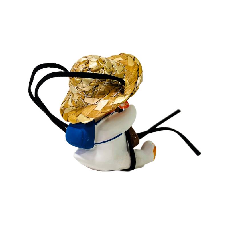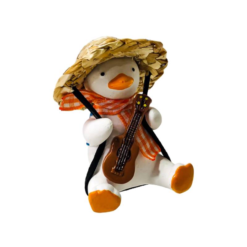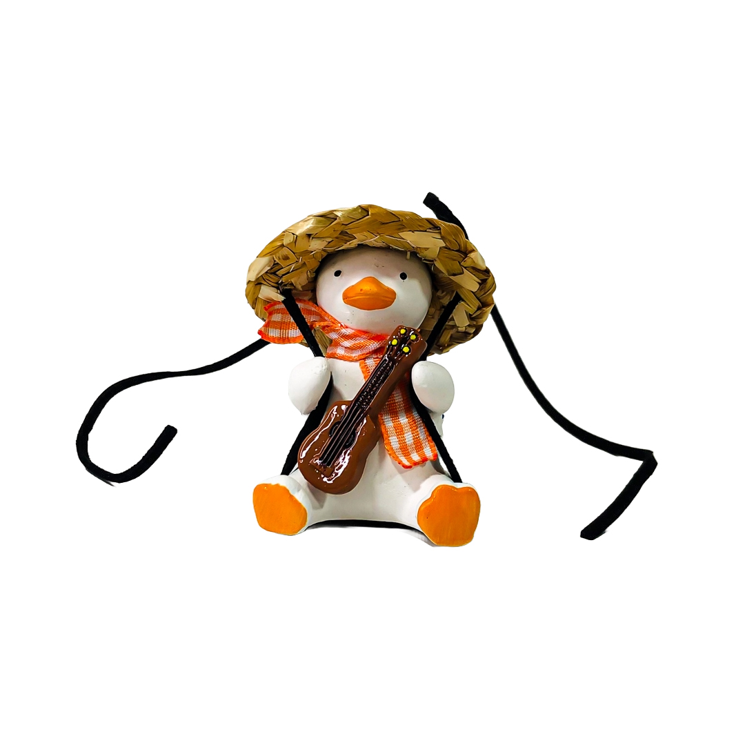 OR-DUCK018 PATITO DECORATIVO COLGANTE DE CERAMICA PARA AUTO COUNTRY MUSIC CON SOMBRERO DE PAJA Y GUITARRA CRIOLLA