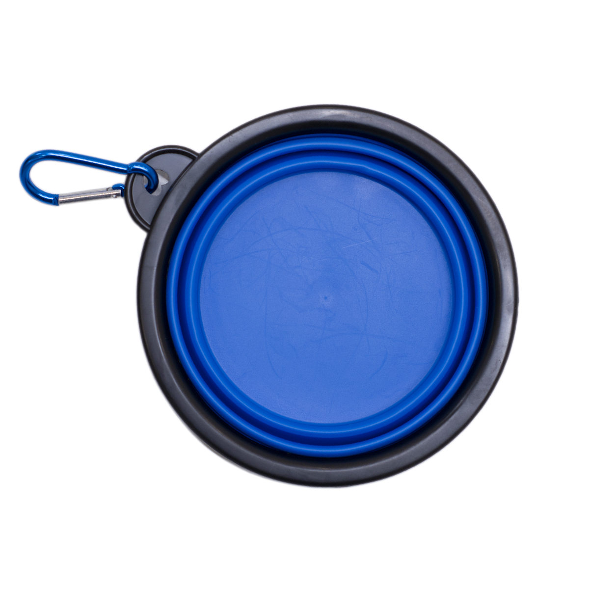 BOWL PARA MASCOTAS AZUL CON GANCHO PELGABLE DIAMETRO 12.5 CM ALTURA 5 CM (LUEGO DE PLEGARSE 1 CM DE ALTURA)
