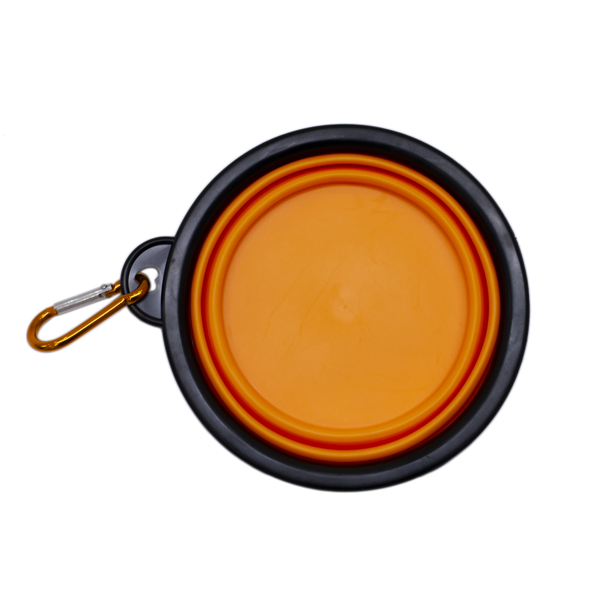 BOWL PARA MASCOTAS NARANJA CON GANCHO PELGABLE DIAMETRO 12.5 CM ALTURA 5 CM (LUEGO DE PLEGARSE 1 CM DE ALTURA)