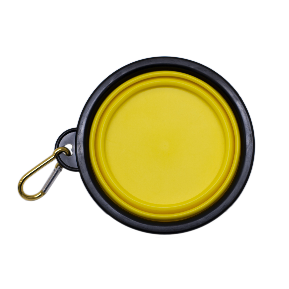 BOWL PARA MASCOTAS AMARILLO CON GANCHO PELGABLE DIAMETRO 12.5 CM ALTURA 5 CM (LUEGO DE PLEGARSE 1 CM DE ALTURA)