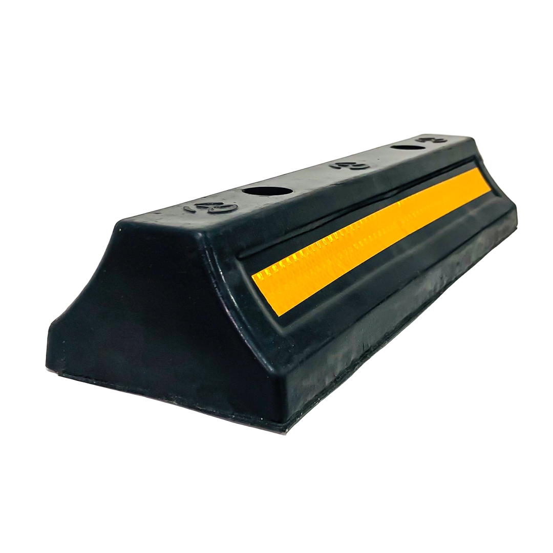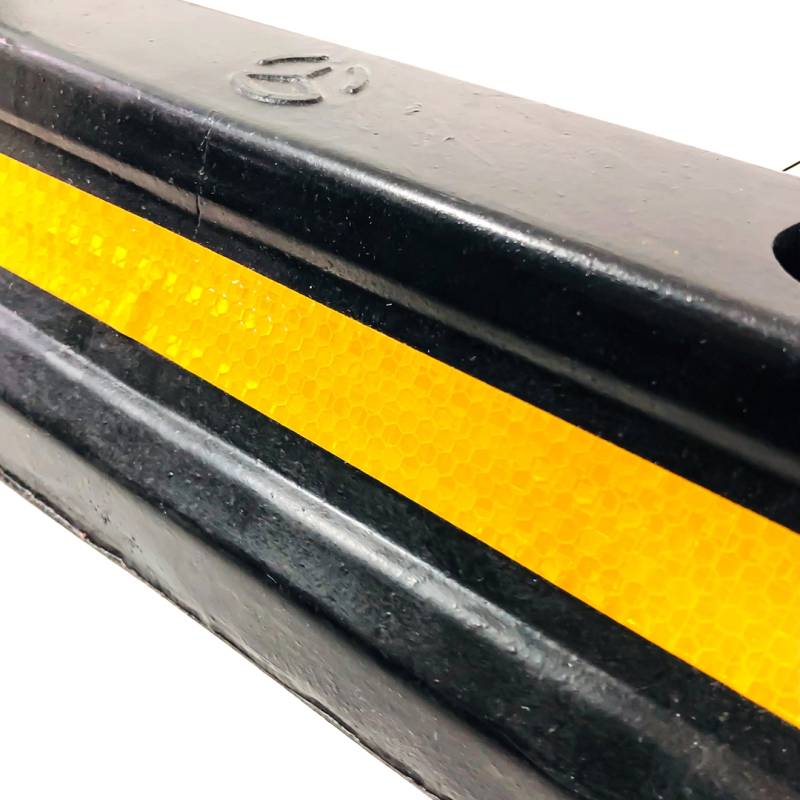TOPE PARA ESTACIONAMIENTO DE GOMA RESISTENTE CON REFLECTOR AMARILLO 50 CM X 15 CM PESO 3.8 KG